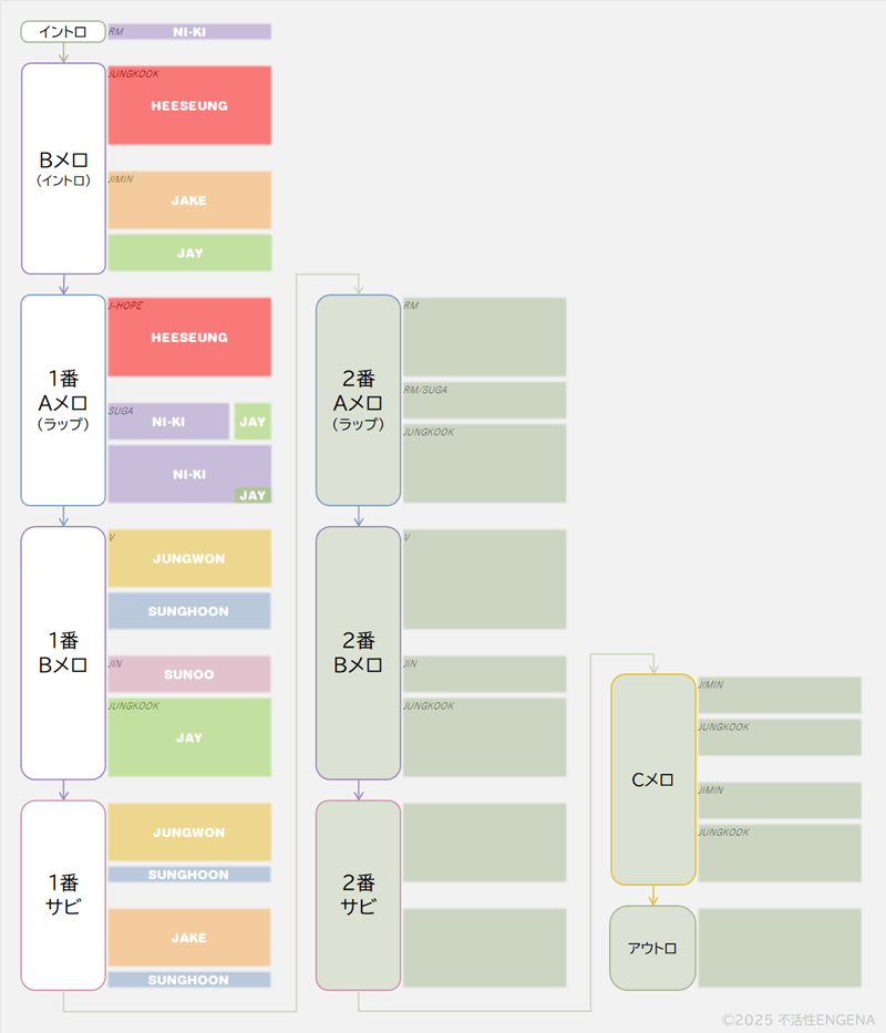 BTS では JUNGKOOK、ENHYPEN ではジョンウォンのパートになっています。